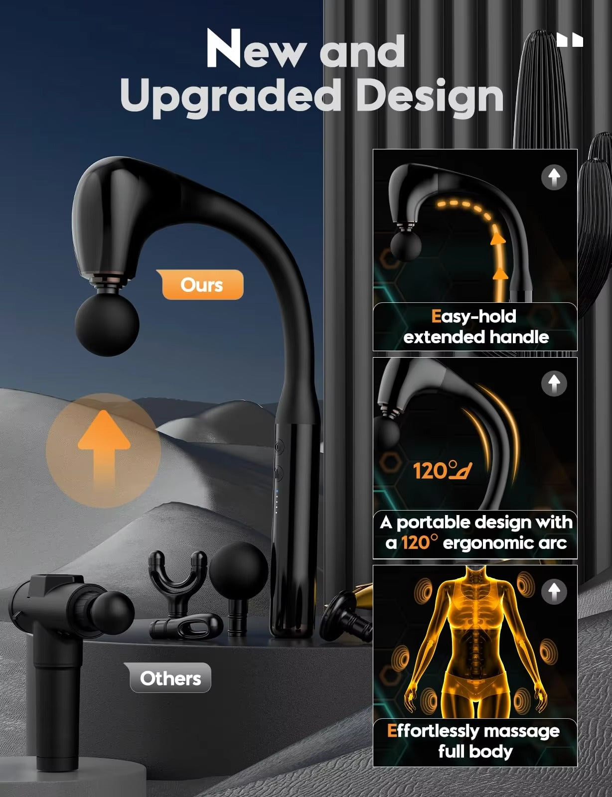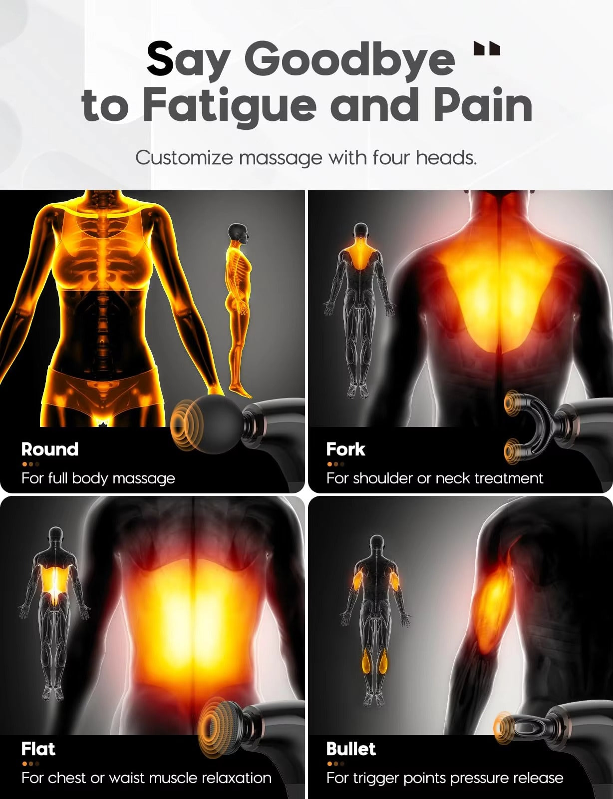 Long Handle Massage Guns Body Deep Tissue Handheld Massager Electric Fascial Gun Vibration Stick Massager Hammer