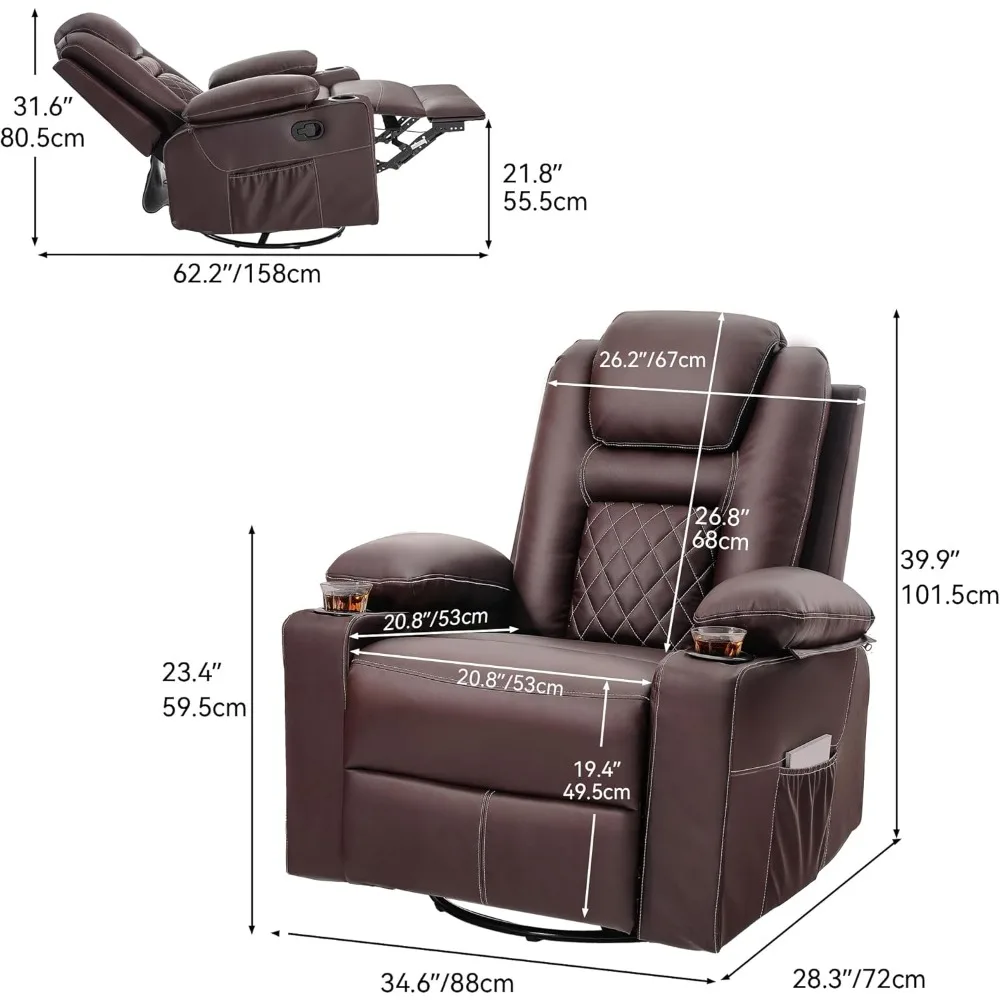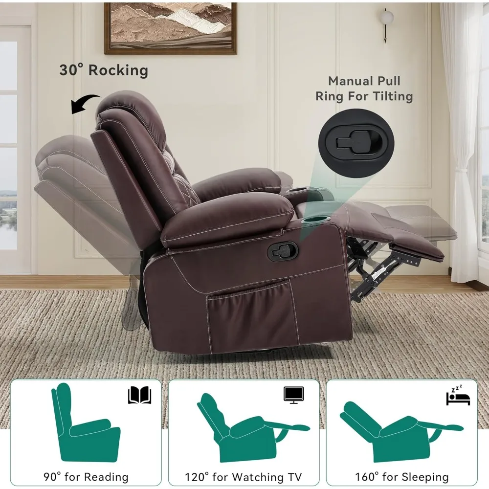 Massage and Heat Swivel Rocker Recliner Chair with 360° Rotation, Faux Leather Manual Recliner Featuring Cup Holders