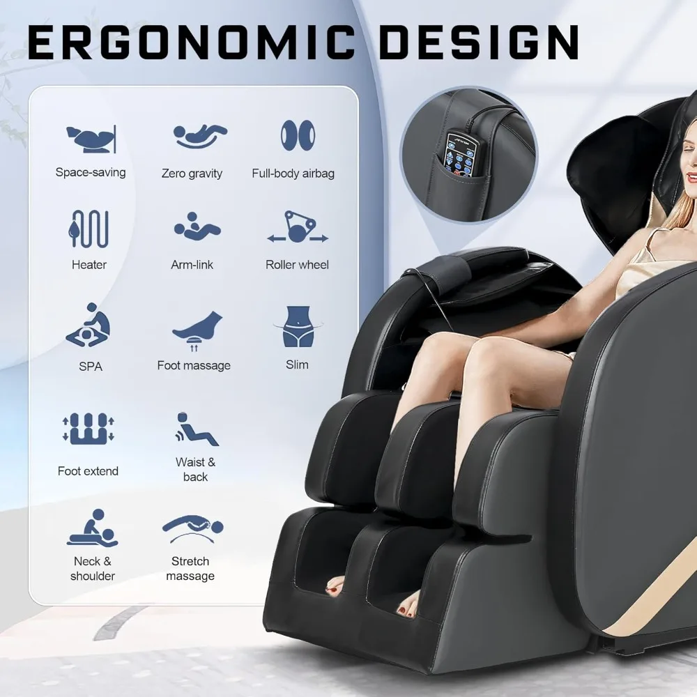 - Zero Gravity Massage Chair: The 8 fixed rollers on the back to massage your neck, back and waist. Once you press the "Zero Gravity" button, the chair will recline completely, positioning your feet above the heart level. This reduces the pressure of gravity on your body, alleviates the burden on your heart, and enhances the massage experience.