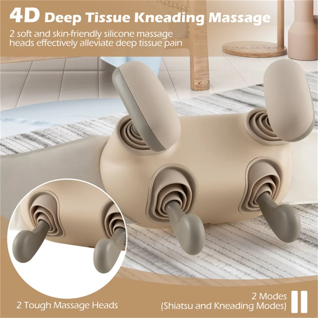 ● 4D Deep Tissue Kneading Massage: The back massager features 2 soft silicone massage heads and 2 tough massage heads that offer human-like massage performance, ensuring comfortable and effective relief every time. Choose between 2 modes (shiatsu and kneading modes) to customize your massage experience.