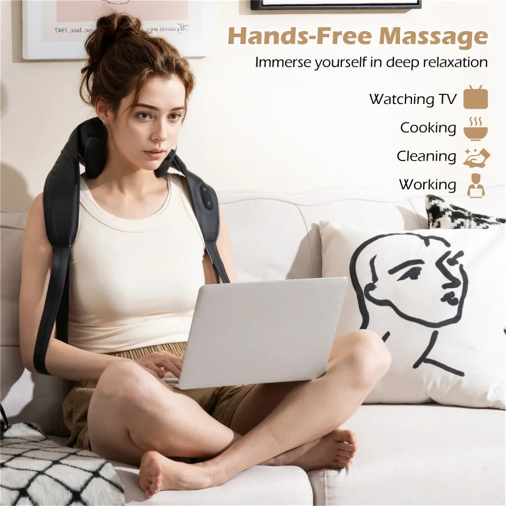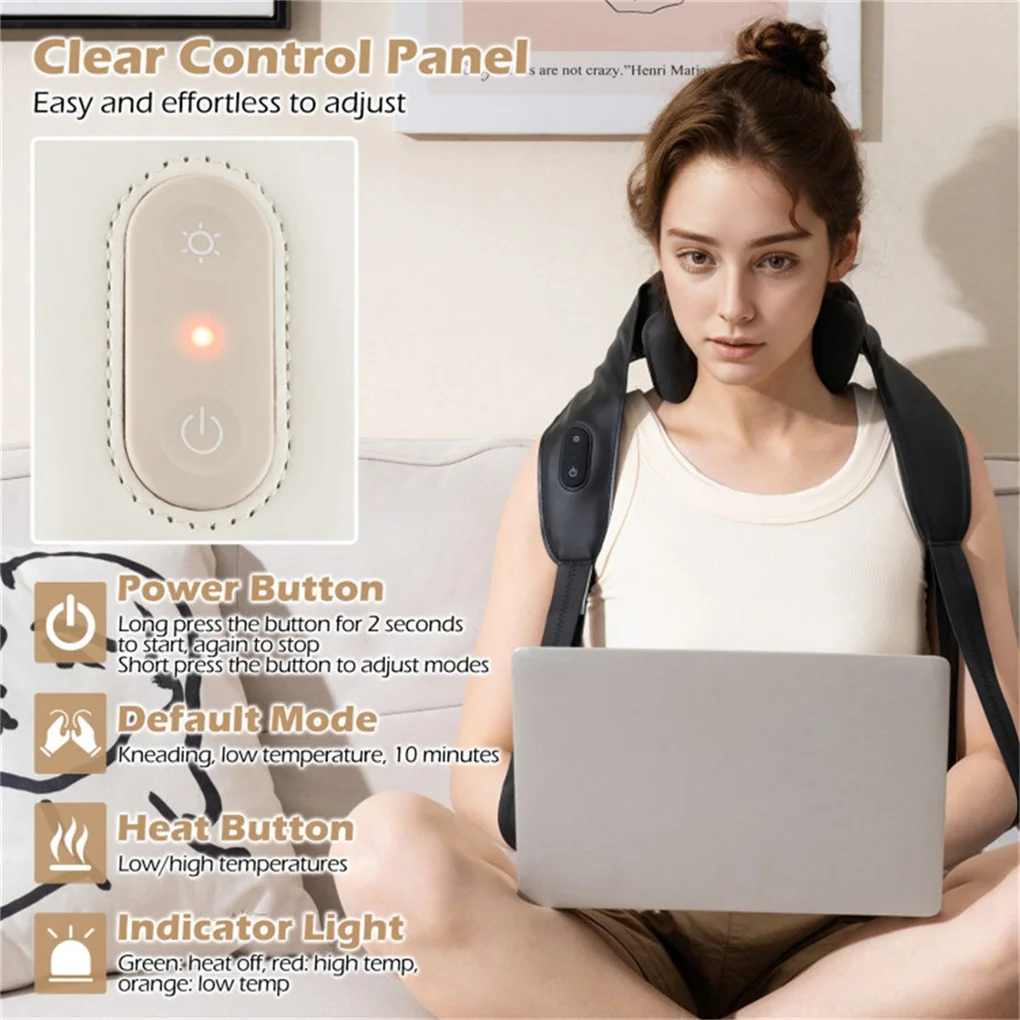 Neck Shoulder Massager - 4D Deep Tissue Kneading, 2 Modes & 2-Level Heat (104-113°F), Hands-Free Straps for Home/Office/Travel