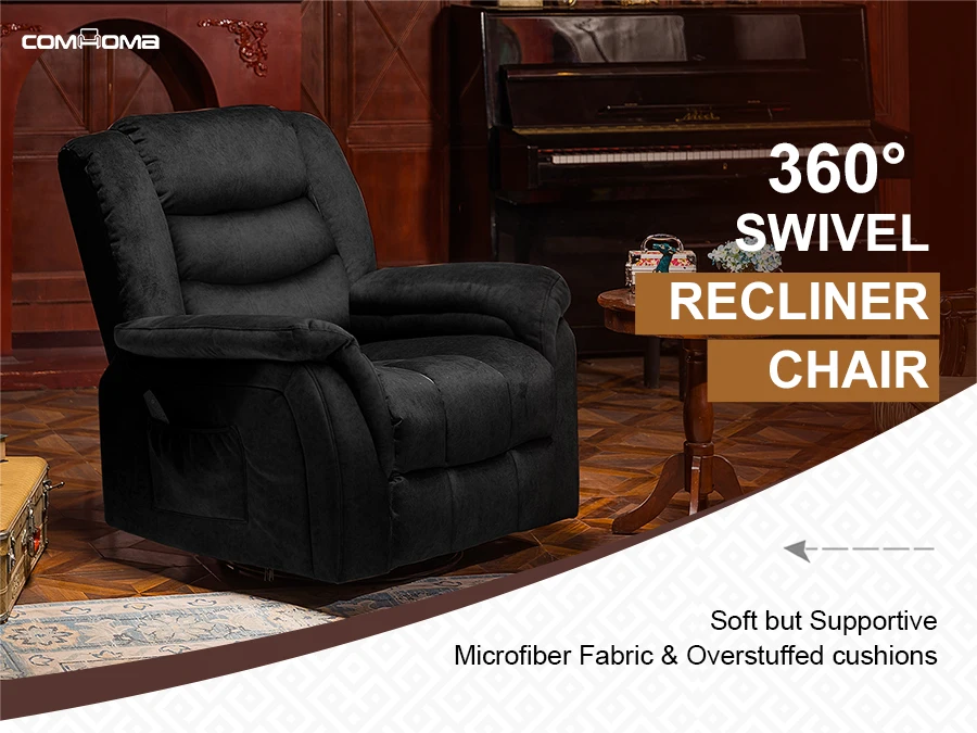 HighDensityCushions-ComhomaSwivelReclinerIsCraftedFromHighDensityResilientSpongeThatWillNotSinkUponSittingDownButOfferGoodSupportToYourWholeBody;EvenIn theLongHoursOfIdleSittingYouCanTrustOurRockingReclinerChairRToProvideYouTheBestSeatingExperience