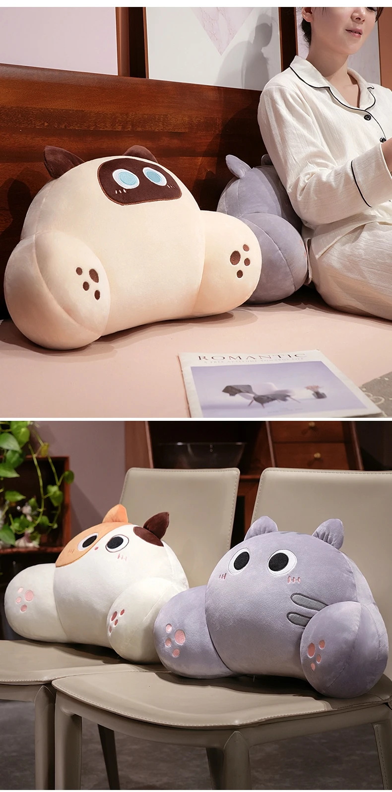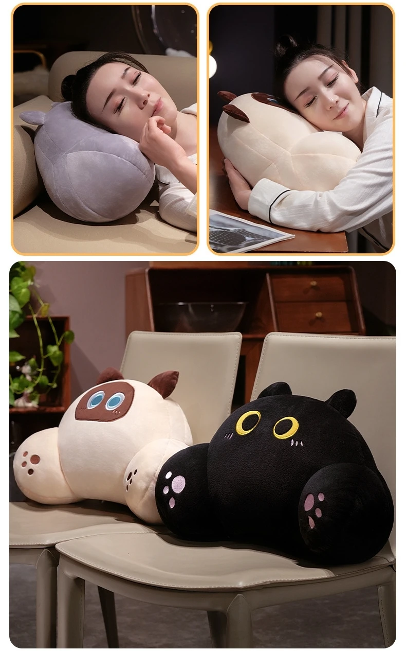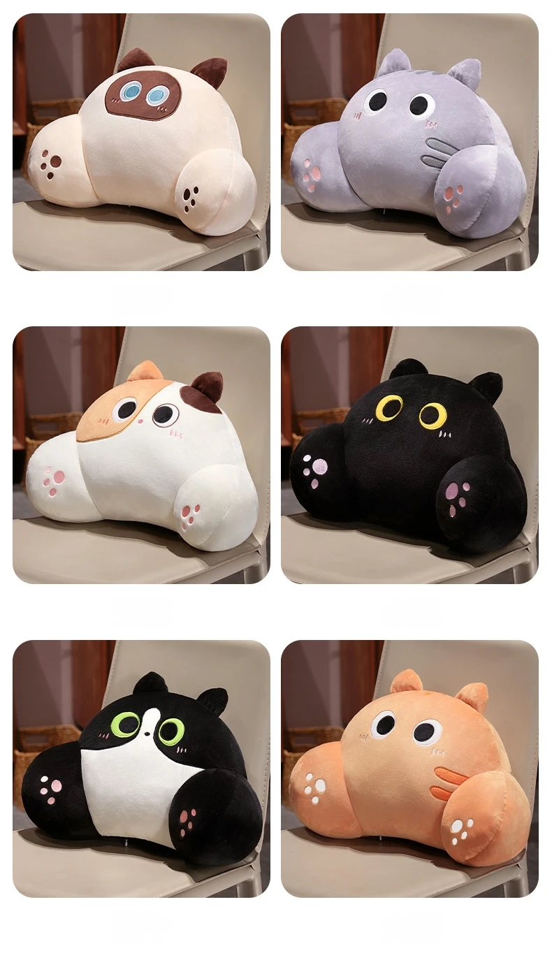 Thickened Cat Back Cushion Siamese Calico Cat Sofa Bed Chair Lumbar Support Cushion Comfortable Throw Pillow Home Decor Girl