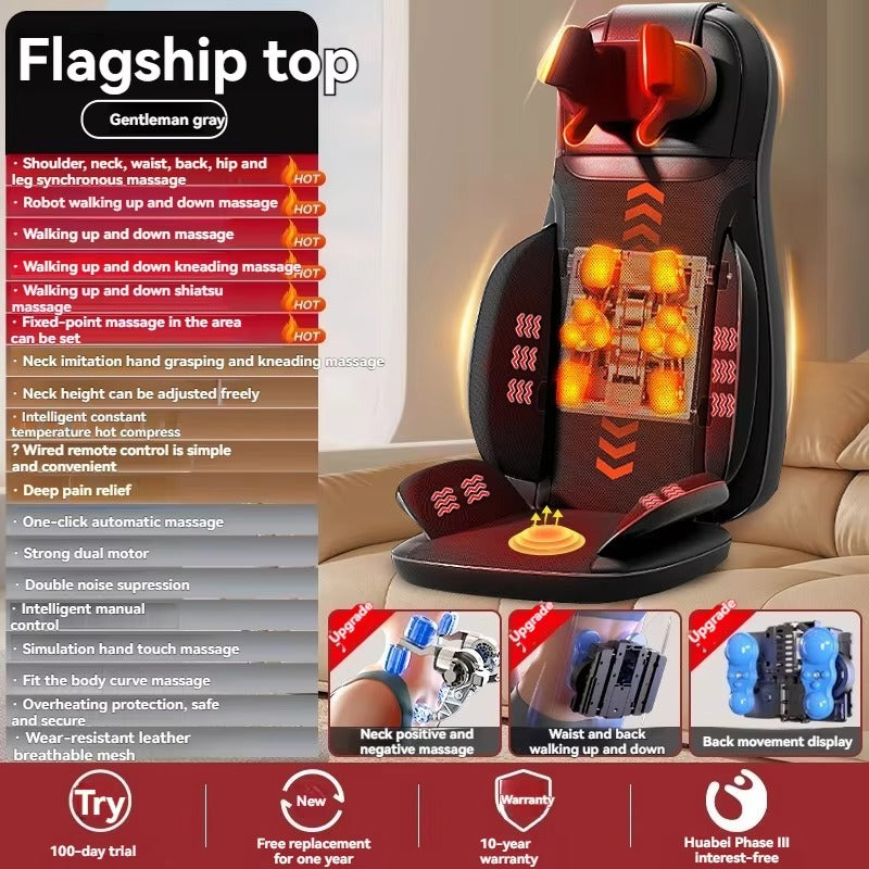 4D Full Body Shiatsu Massage Pillow Infrared Physiotherapy PU Leather Plug-In Cervical Spine Neck Back Waist Grey Home Use Oem