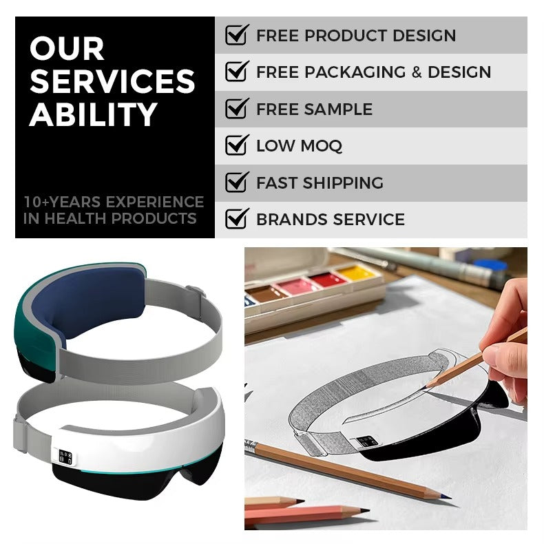 Private Model Smart Heated Ai Voice Eye Care Massager LED Light Bar Music Vibration Foldable Eye Massager With Heat Compression